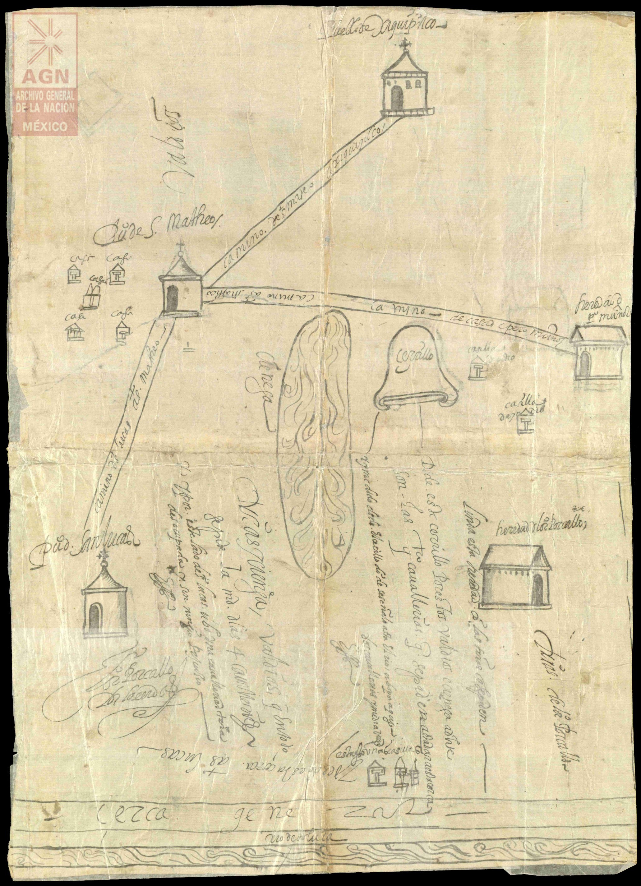 - Figura 6. Mapa de solicitud de merced de Baltasar Dorantes de Carranza en los alrededores de Xiquipilco