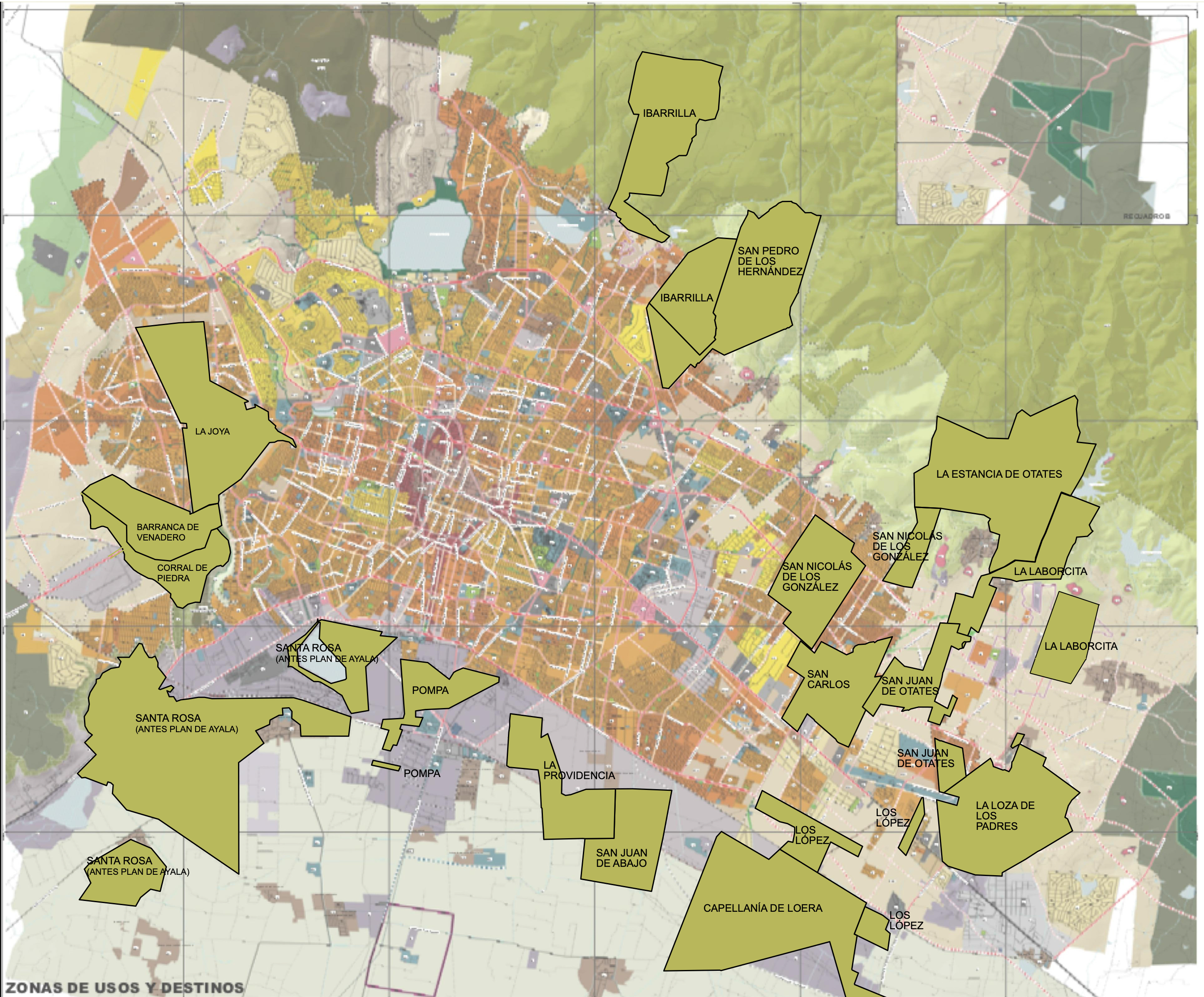 - Imagen I. Plano de usos del suelo en el que se muestran los ejidos cercanos